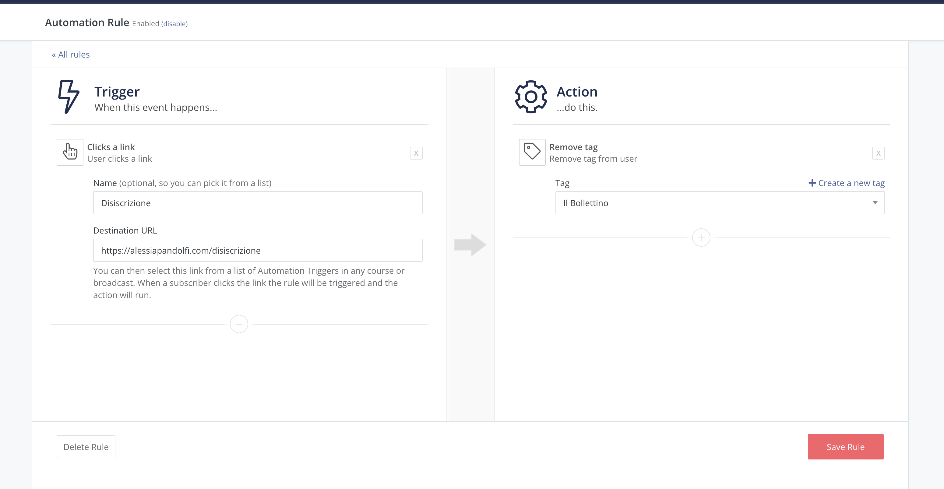 Un’altra automazione che mi piace molto e che ti fa risparmiare tempo, è lo spostamento automatico di un contatto da una lista all’altra.
